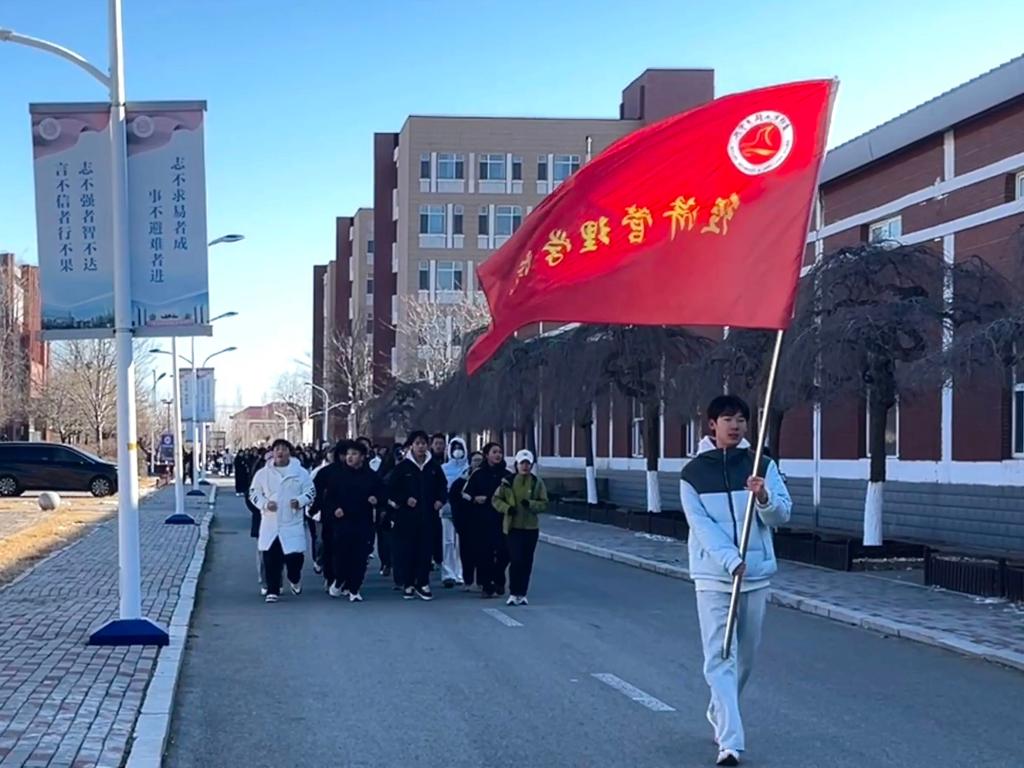 为深入贯彻落实全民健身理念,营造阳光健康、积极向上的校园体育文化氛围,12月30日,经济管理学院成功举办体育节健康跑活动。盘锦职业技术学院党委副书记、校长宋锦,副校长勾殿红,学生处处长王中宇、副处长王俊杰,经济管理学院党支部书记张长江、副院长安彬(主持工作)、办公室主任李超凡,网络营销与直播电商教研室主任孙玉苹,辅导员张忠、付思楠、程圣杰、李卓航,以及任课教师于清华、杨洋、林天钰、杨希、罗浩、王子薇、陈越、苗瑀格,与全院近500名学生共同参与本次活动。活动由经济管理学院党支部副书记王跃主持。